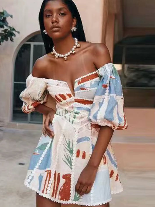 Breezy Elegance: Summer Ruffled Short Sleeved Slim Long Dress